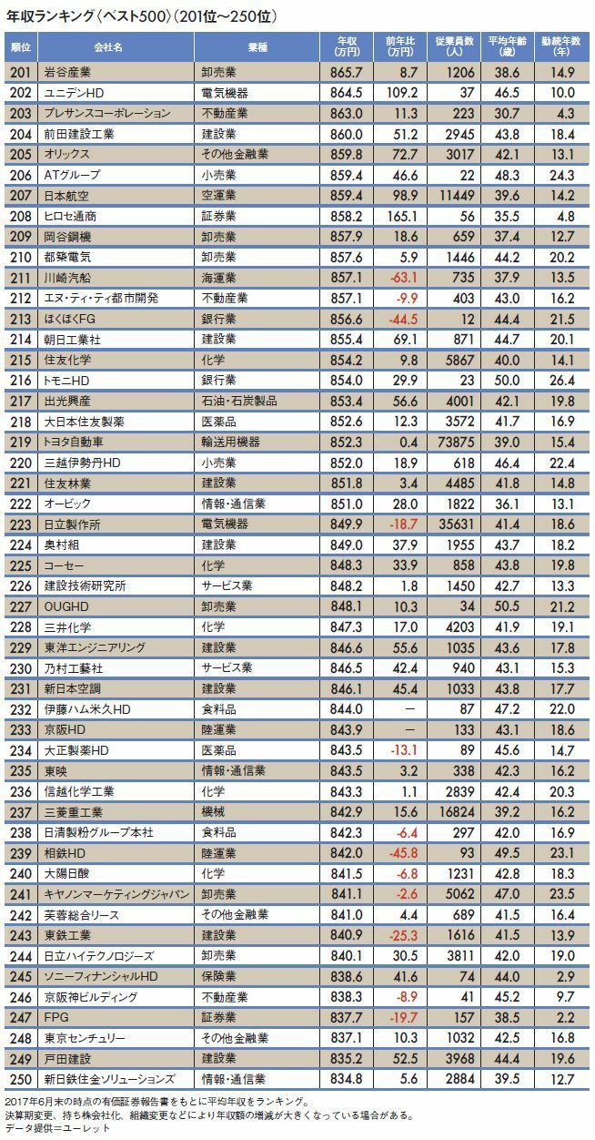 平均年収が高い"トップ500社"ランキング