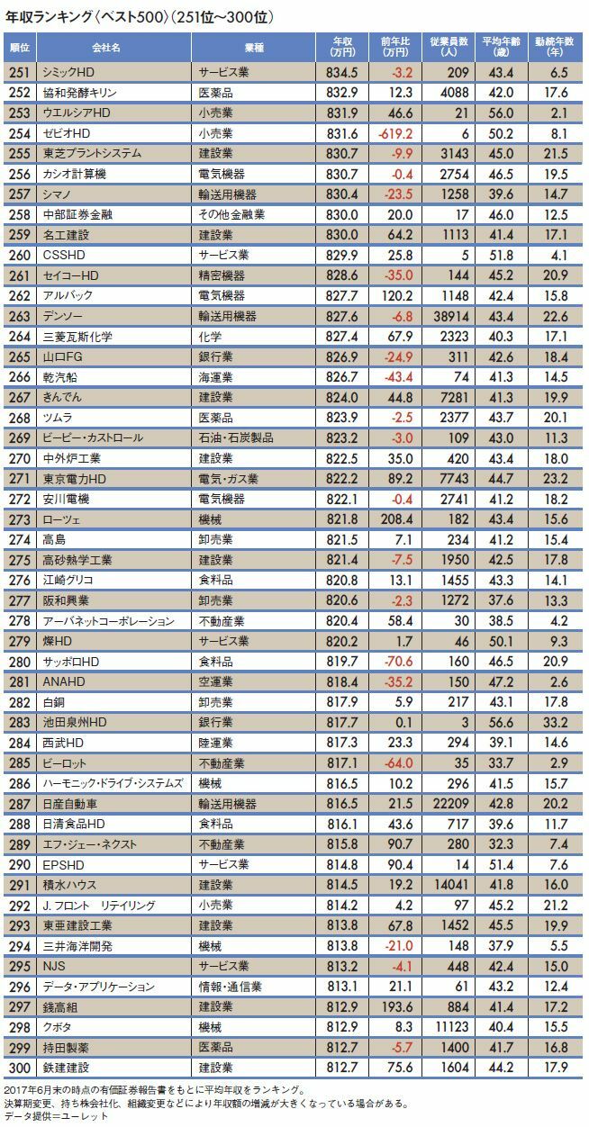 平均年収が高い"トップ500社"ランキング