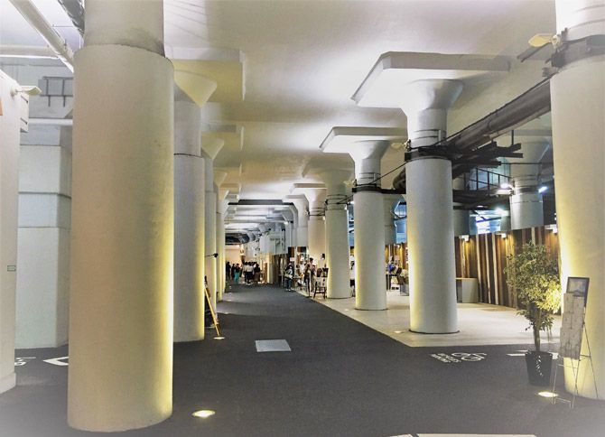 高架下の建造物として柱をいかしたデザインの「2k540 AKI-OKA ARTISAN」(著者撮影)