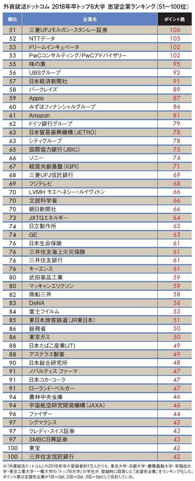 トップ6大学「就職人気企業ランキング」