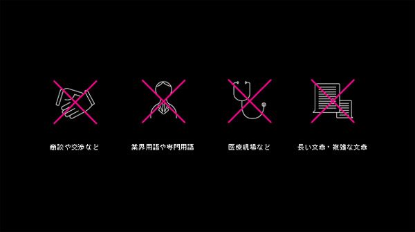 中央のボタンを押しながら日本語で話しかけると、瞬時に英語に翻訳してくれる。