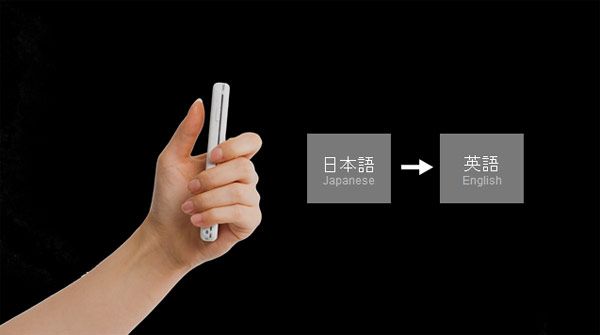 中央のボタンを押しながら日本語で話しかけると、瞬時に英語に翻訳してくれる。