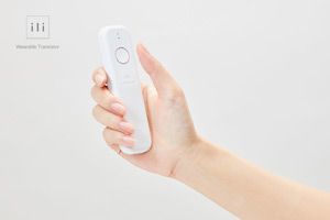 中央のボタンを押しながら日本語で話しかけると、瞬時に英語に翻訳してくれる。