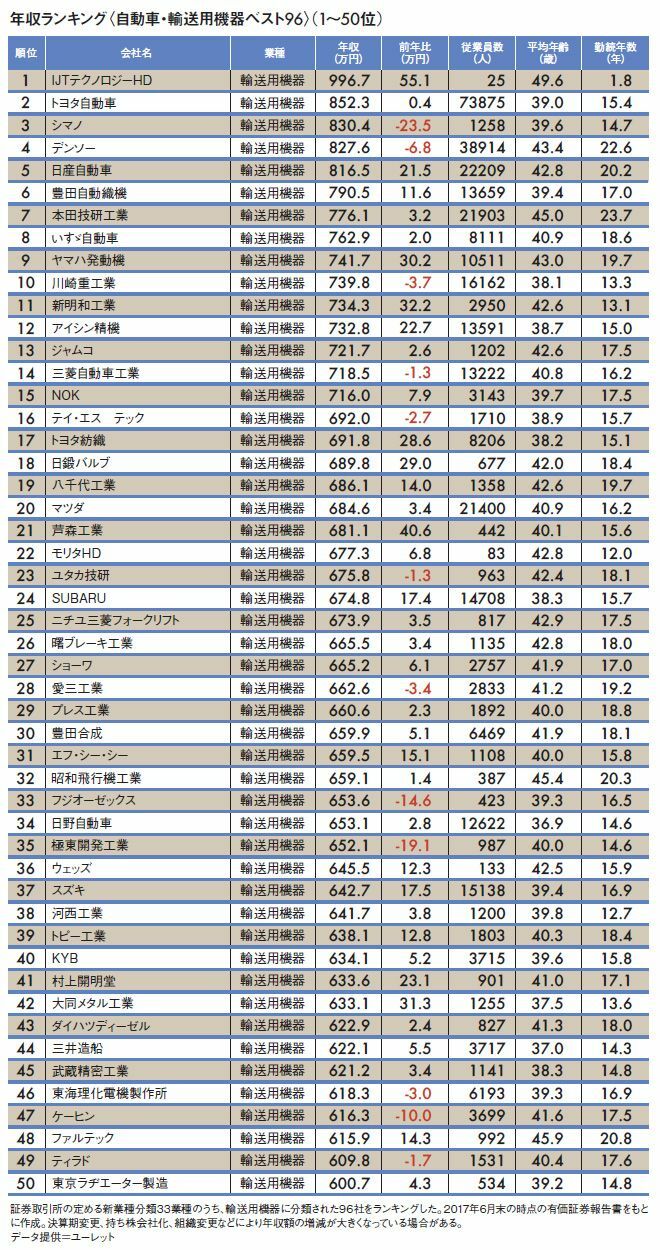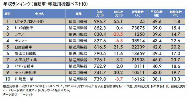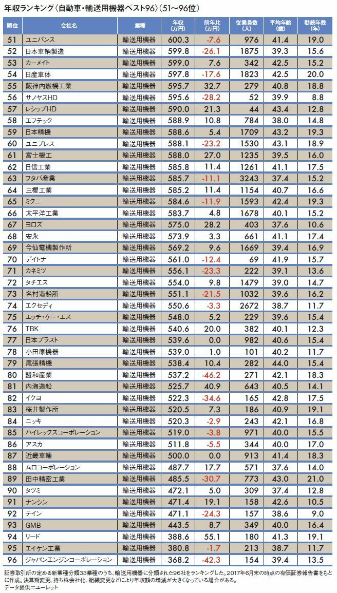 「自動車業界96社」平均年収ランキング