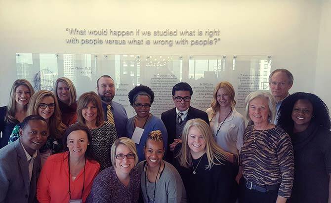 2017年2月17日米国シカゴのギャラップ社オフィスにて。5日間の上級ストレングスコーチ講座修了式後の受講生集合写真。中央右が筆者。(筆者提供)