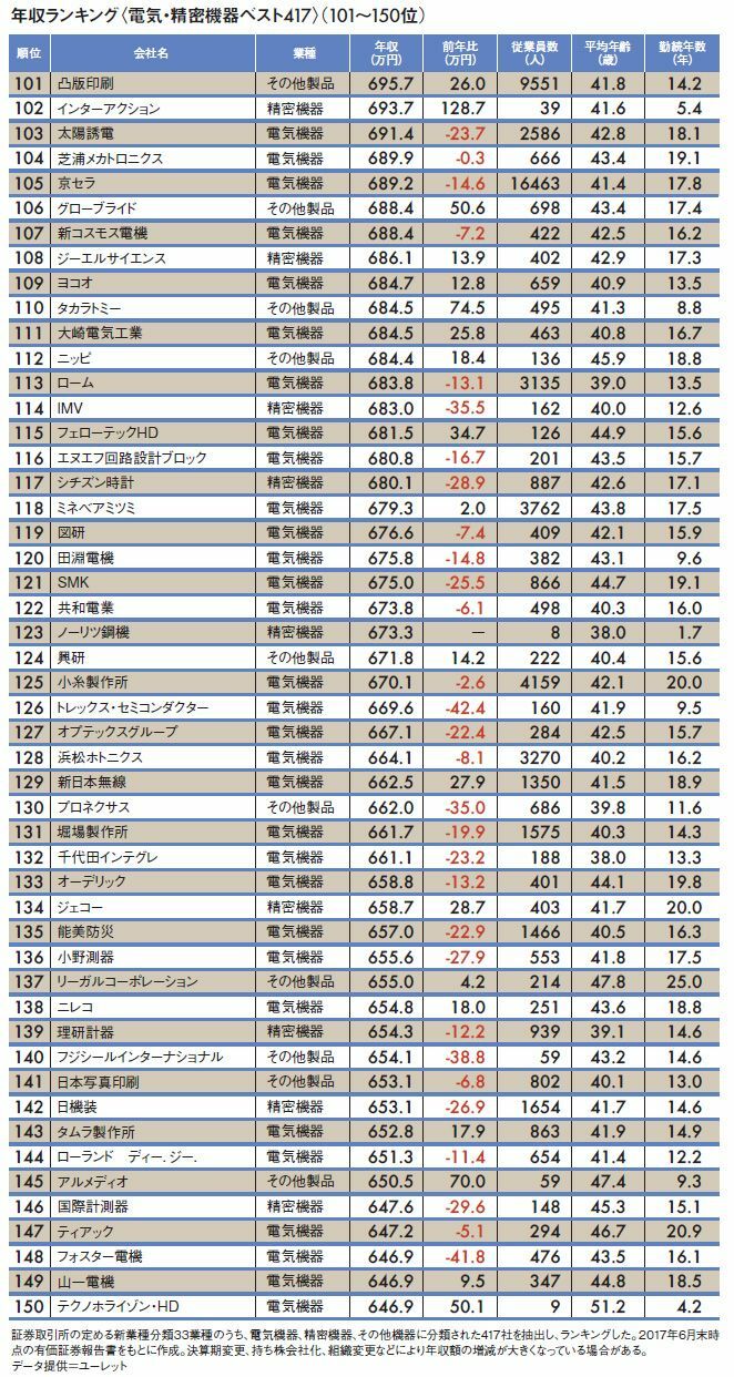 電機業界全417社「平均年収ランキング」