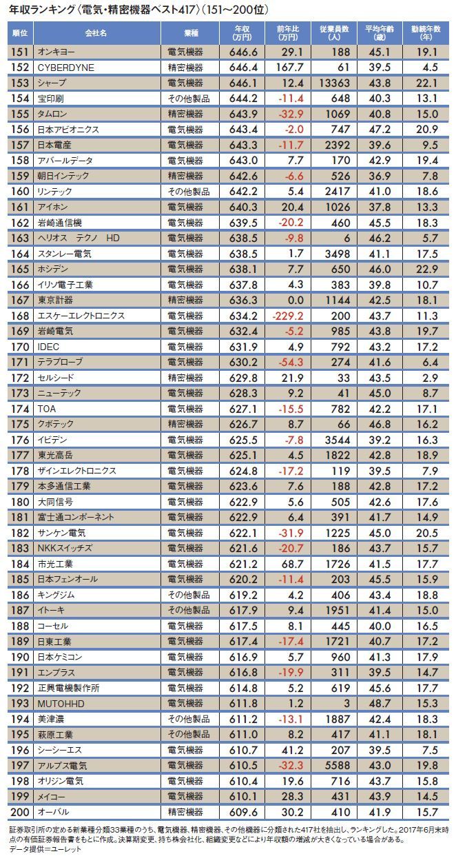 電機業界全417社「平均年収ランキング」