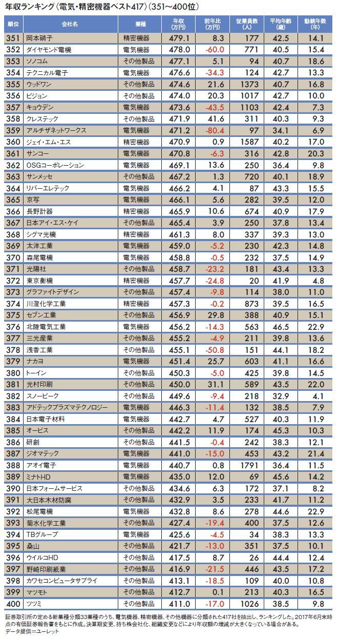 電機業界全417社「平均年収ランキング」