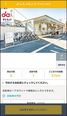 「ハローサイクリング」の操作画面。スマホで手軽に予約できる。