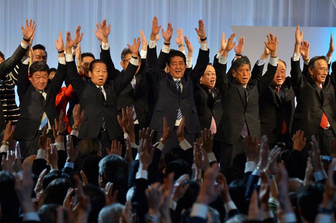 安倍晋三首相は今年3月の自民党定期党大会で、憲法改正発議への決意を表明した。(写真=UPI/アフロ)