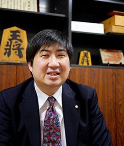 鈴木大介九段。1974年、東京都生まれ。日本将棋連盟常務理事。1994年、プロデビュー。振り飛車党であり、藤井猛九段、久保利明王将と共に「振り飛車御三家」と呼ばれる。