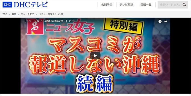 BPOが問題視した番組「ニュース女子」について、制作したDHCは現在もネット上で配信をつづけている。