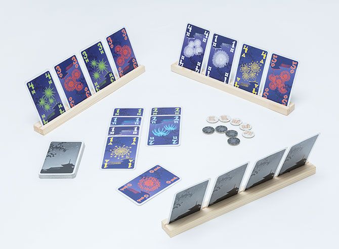 *協働力を育むゲーム「花火」。同色の花火カードを1~5まで並べ花火を打ち上げる。ヒントをもらったりヒントを出したり。「うまく部下を動かせない上司の気持ちが体験できる」(高橋さん)。プレジデントFamily冬号「頭がよくなるボードゲーム18」で紹介。
