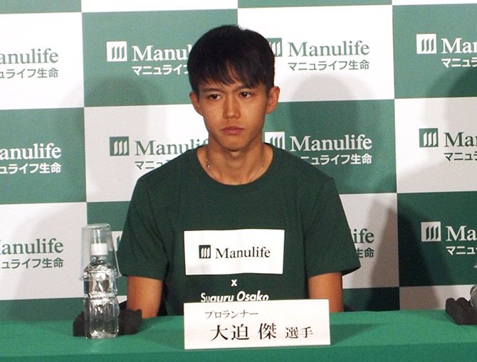 マニュライフ生命保険とのスポンサーシップ契約締結会見に出席した大迫選手
