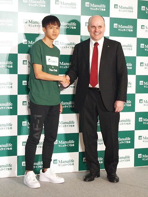 マニュライフ生命保険とのスポンサーシップ契約締結会見に出席した大迫選手