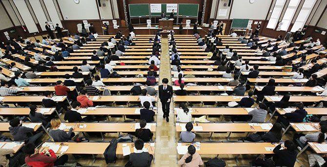 大学入試センター試験に臨む受験生=2017年1月14日、東京都文京区の東京大学(写真=時事通信フォト)