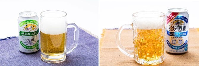 淡麗グリーンラベル(左)、淡麗プラチナダブル(右)