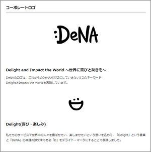 DeNAのウェブページ内のコーポレートロゴに関するページより。