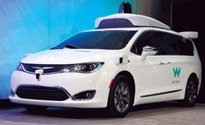 ハンドルもペダルもない完全自動運転車として話題を呼んだ「ウェイモ」の新型車。(共同通信=写真)