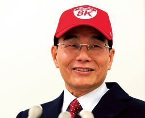 東証1部復帰を喜ぶシャープの戴正呉社長(2017年12月7日)。(AFLO=写真)