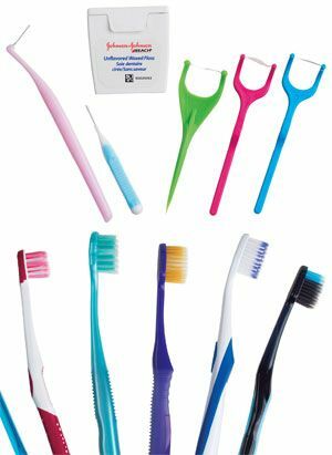 (上)歯ブラシだけではよく磨ききれないという人は、デンタルフロスや歯間ブラシなどの道具と組み合わせて使おう。 (下)ヘッドの大小、毛の硬軟、毛先の形状など様々な種類がある歯ブラシ。自分に合った究極の1本を見つけよう。