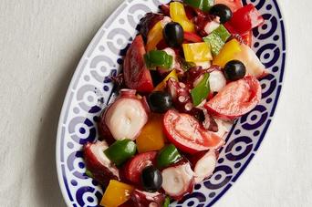 ビネガーの酸味とオリーブの旨味がたまらない"魚介のサルピコン"