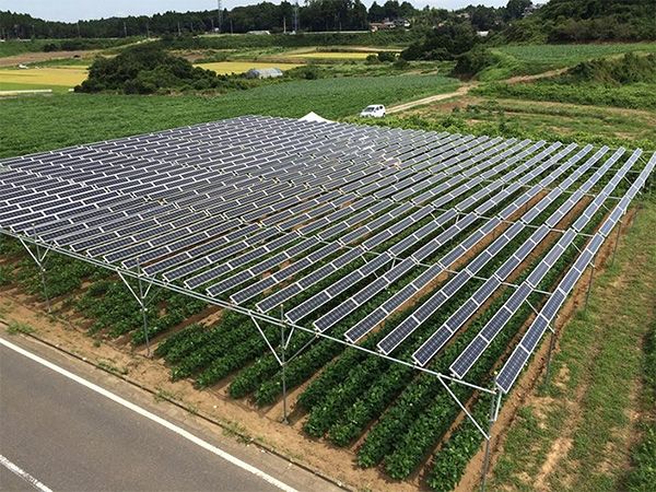 農地に設置した太陽光パネルで発電する「ソーラーシェアリング」=千葉県[市民エネルギーちば提供](写真=時事通信フォト)