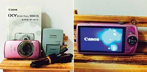 1枚目(左)には付属品をすべて載せる。2枚目(右)には電源が入った写真を。
