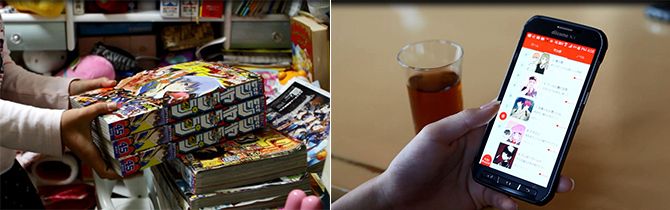 (左)人気投票のために同じ号を3冊購入する小4女子。(右)好きなマンガの作者を支えるために課金するという中2男子。