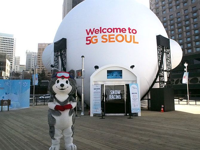 KTと競合のSKテレコムの5Gプラザ(ソウル・シティセンター前)