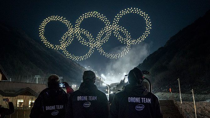 開会式でのドローン編隊の飛行の様子(写真提供=インテル)