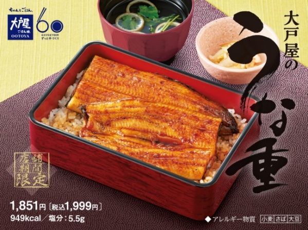 期間限定商品の「大戸屋のうな重」。価格は1851円(税込1999円)。