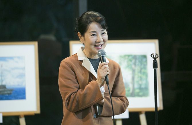 2017年11月5日、米国の水爆実験で被ばくしたマグロ漁船「第五福竜丸」の建造70年記念特別企画で、あいさつする女優の吉永小百合さん(写真=時事通信フォト)