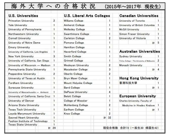 渋谷教育学園幕張高校「2017年度版の進路実績」より抜粋。