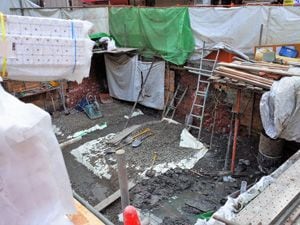 出土した凌雲閣の遺構(著者撮影)