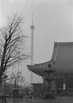 開業当時のポニータワー。ドーナツ型の展望台が見える。(写真=時事通信フォト)