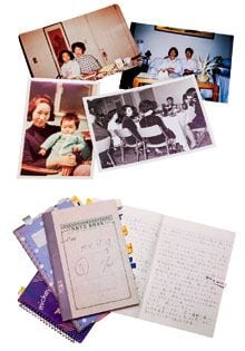(上)生後6カ月から11歳まで暮らした台湾。(下)家を解体するとき、赤い和紙が貼られている箱を見つけた。そこには結婚前に父と母が交わした手紙や子どもたちへの手紙、母が綴っていたノートが入っていた。「母は父の人生を書き残したかったのでしょう」