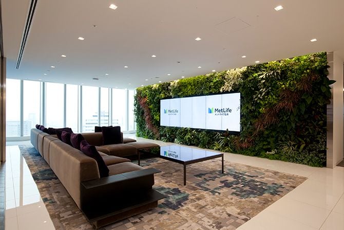 メットライフ生命は2017年4月に「東京ガーデンテラス紀尾井町」オフィスに移転した。写真は27階の受付。