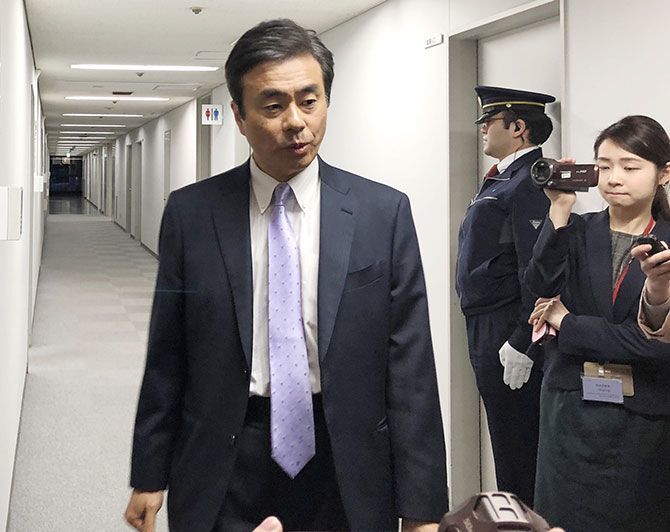 4月10日、記者の呼び掛けに答える柳瀬唯夫経済産業審議官(写真=時事通信フォト)