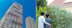 地価が大暴落した後、2040年にはこんなライフスタイルが一般化?(左)平日は都心の賃貸マンション(右)週末は郊外の200坪の持ち家でゆっくり(PIXTA=写真)