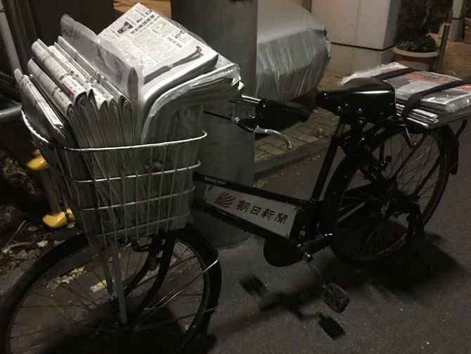 元日の新聞を積み込んだハイ君の自転車(撮影=出井康博)