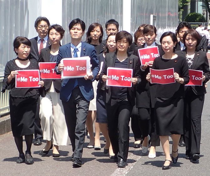2018年4月20日、財務省の福田淳一事務次官のセクハラ疑惑に抗議するため、同省に向かう野党議員の一団(写真=時事通信フォト)