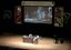 お客役の社員に向けて、コーヒーをプレゼンしながら提供する出場者(編集部撮影)