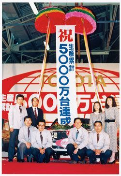 入社3年目の1986年、元町工場時代。前列右から2人目が豊田章男社長。(写真提供=トヨタ自動車)