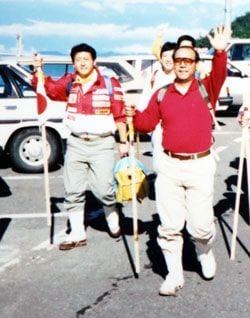 1988年7月、富士山登山のひとこま。泰江さん(右)と豊田章男社長。(写真提供=泰江孝男さん)