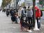 2017年11月3日、米アップルのスマートフォン「iPhone X(アイフォーン・テン)」発売で、行列を作って開店を待つ人々。行列の熱狂は以前に比べて落ち着いている。(写真=時事通信フォト)