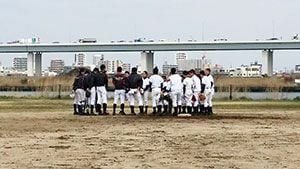 河川敷のグラウンドで集合する球児たち(画像=著者提供)