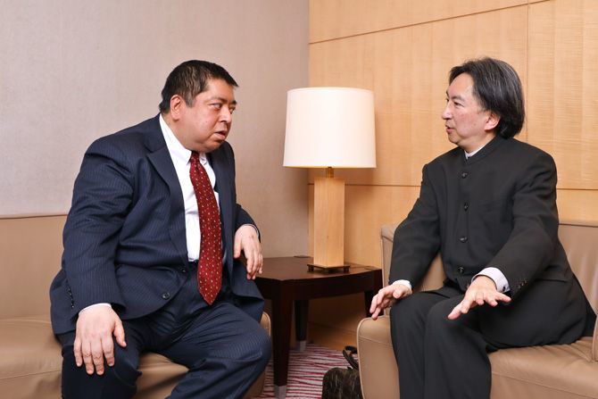 作家の佐藤優氏(左)と慶應義塾大学法学部教授の片山杜秀氏(右)