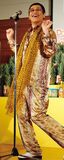 2017年4月11日、東京・港区で世界中でパイナップルを盛り上げた人としてドールから感謝状を贈られるピコ太郎さん。同年1月「PPAP」の商標権を無関係の第三者に出願されたことで話題になった。(時事通信フォト=写真)
