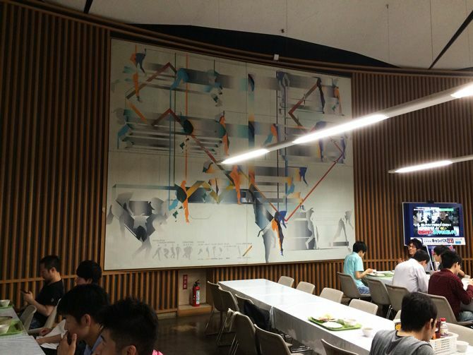 東京大学の食堂に飾られていた宇佐美圭司さんの作品(大学関係者提供)